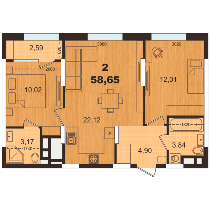 58.65 м²