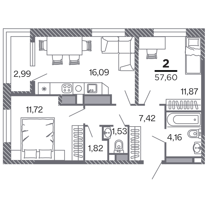 57.60 м²