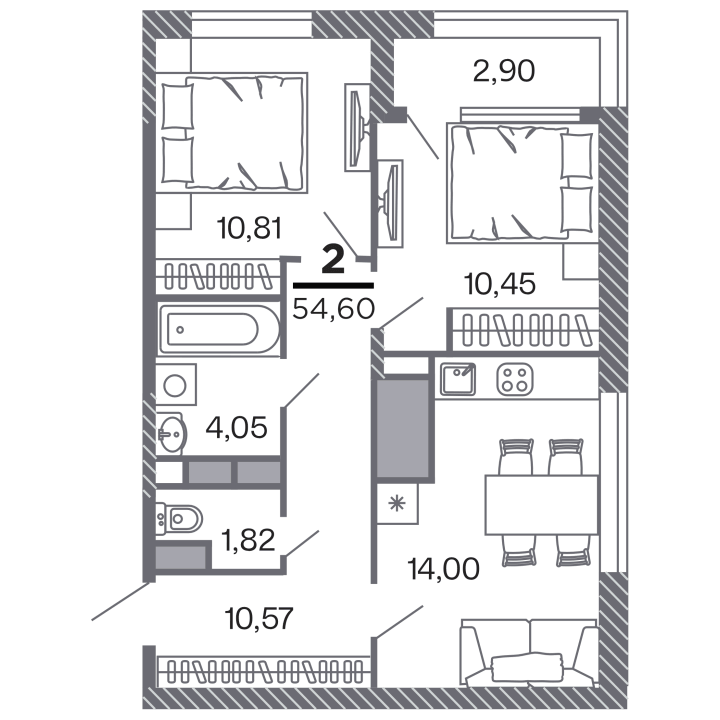 54.60 м²