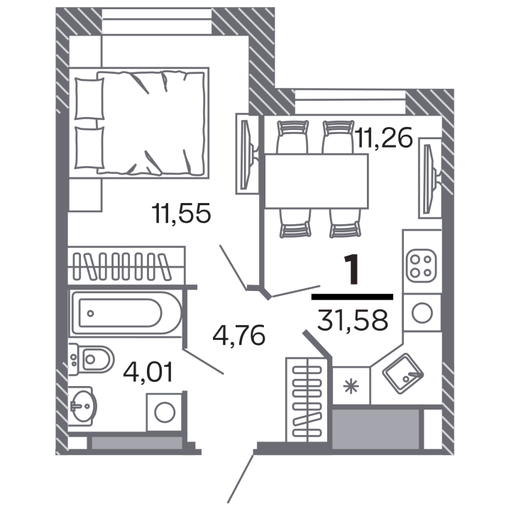 31.58 м²