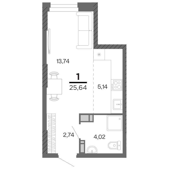 25.64 м²